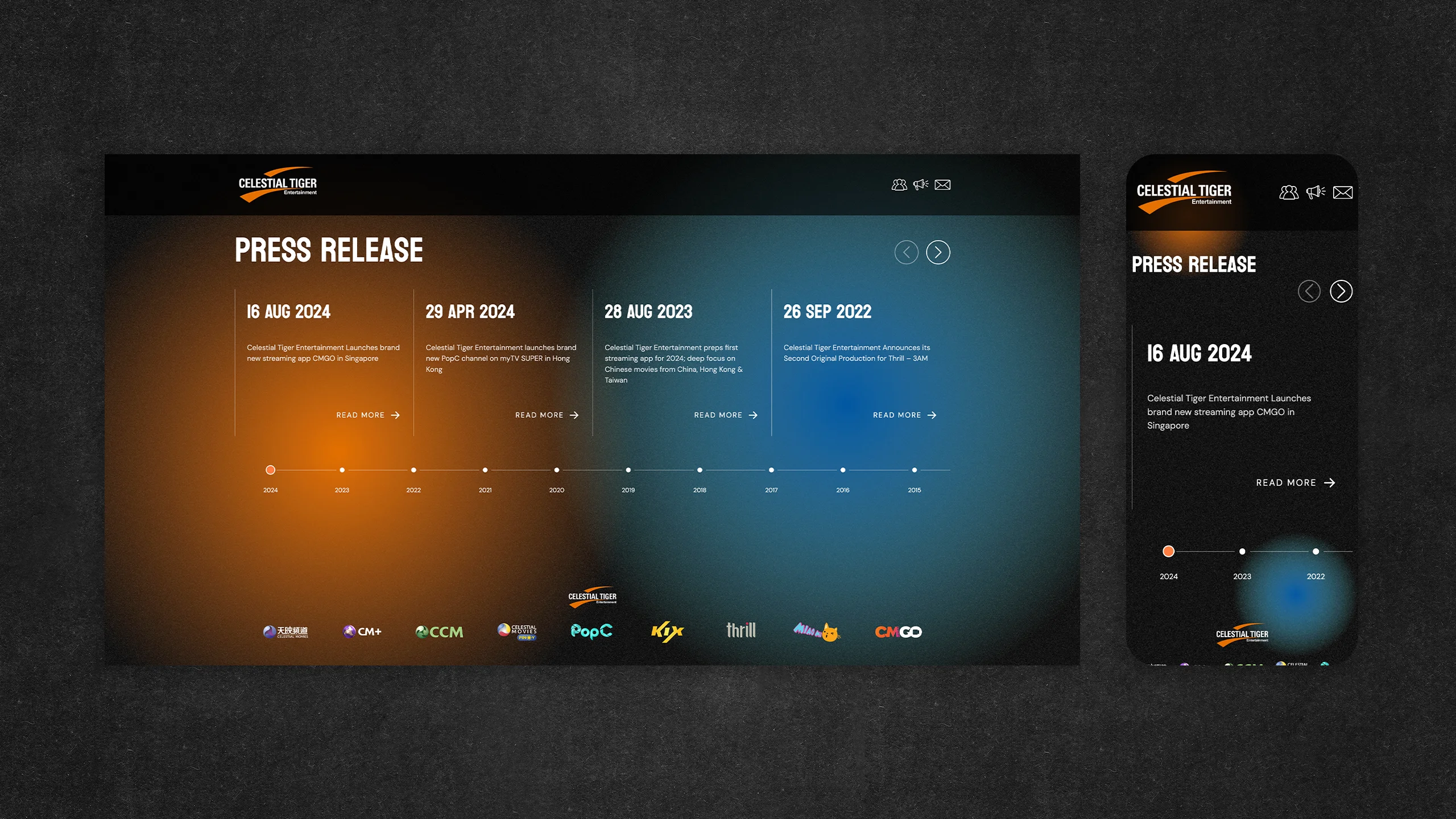 We were tasked with creating the websites for Celestial Tiger Entertainment's channels, featuring a backend content management system for program schedules and show updates.