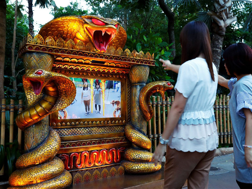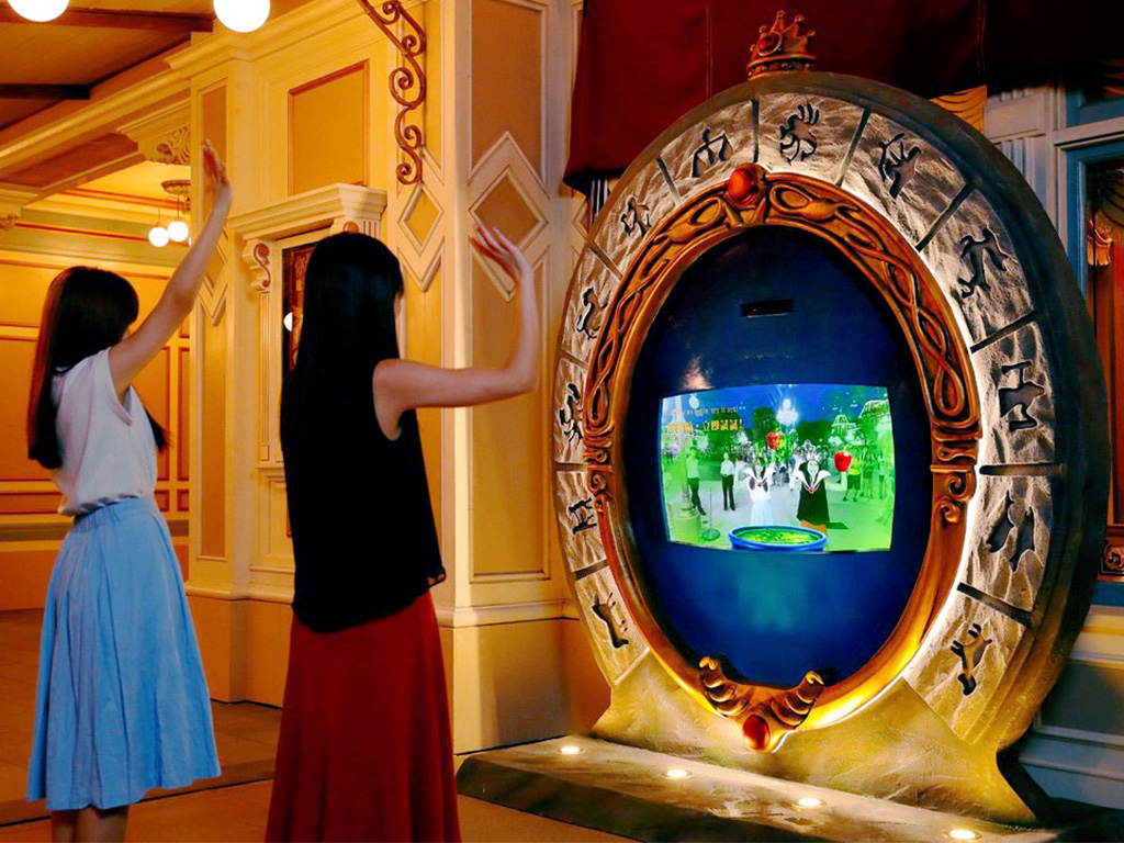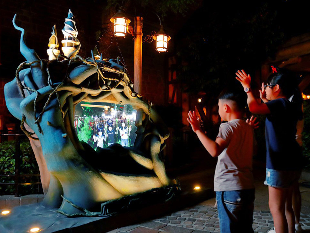 Our custom-designed digital kiosks feature full-body AR technology that transforms visitors into the likeness of the Evil Queen, Jafar, Dr. Facilier, and Maleficent. As guests step in front of the camera, the system detects their movements and seamlessly overlays the villainous characters' signature accessories, costumes, and animated effects.