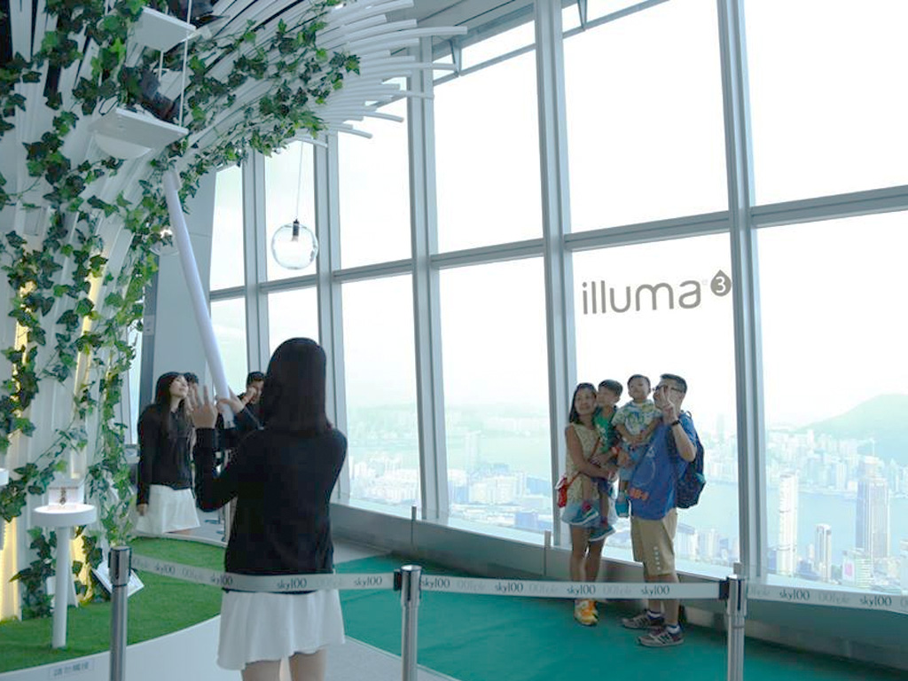 Immerse in nature at ILLUMA's interactive journey at Sky100, Hong Kong's tallest indoor building. Capture memories with a seamless photo-sharing system - share on Facebook with a tap of your key card.