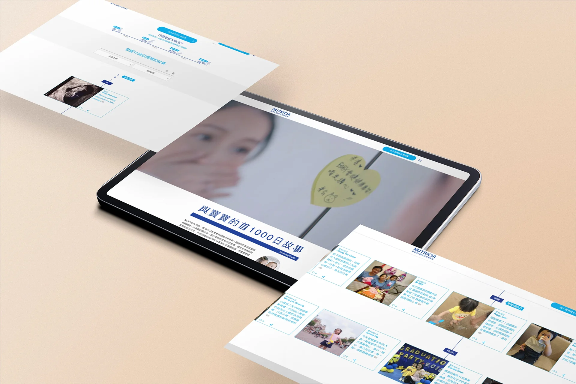 Nutricia's platform features infinite scrolling for 1,000 days of stories, enabling parents to share experiences and receive prompt advice from advisors.