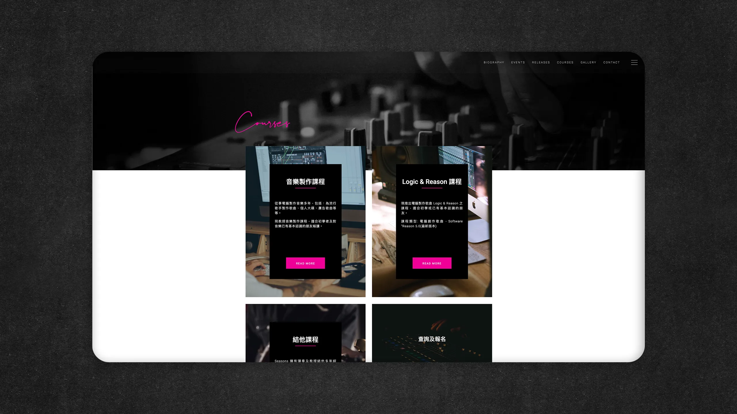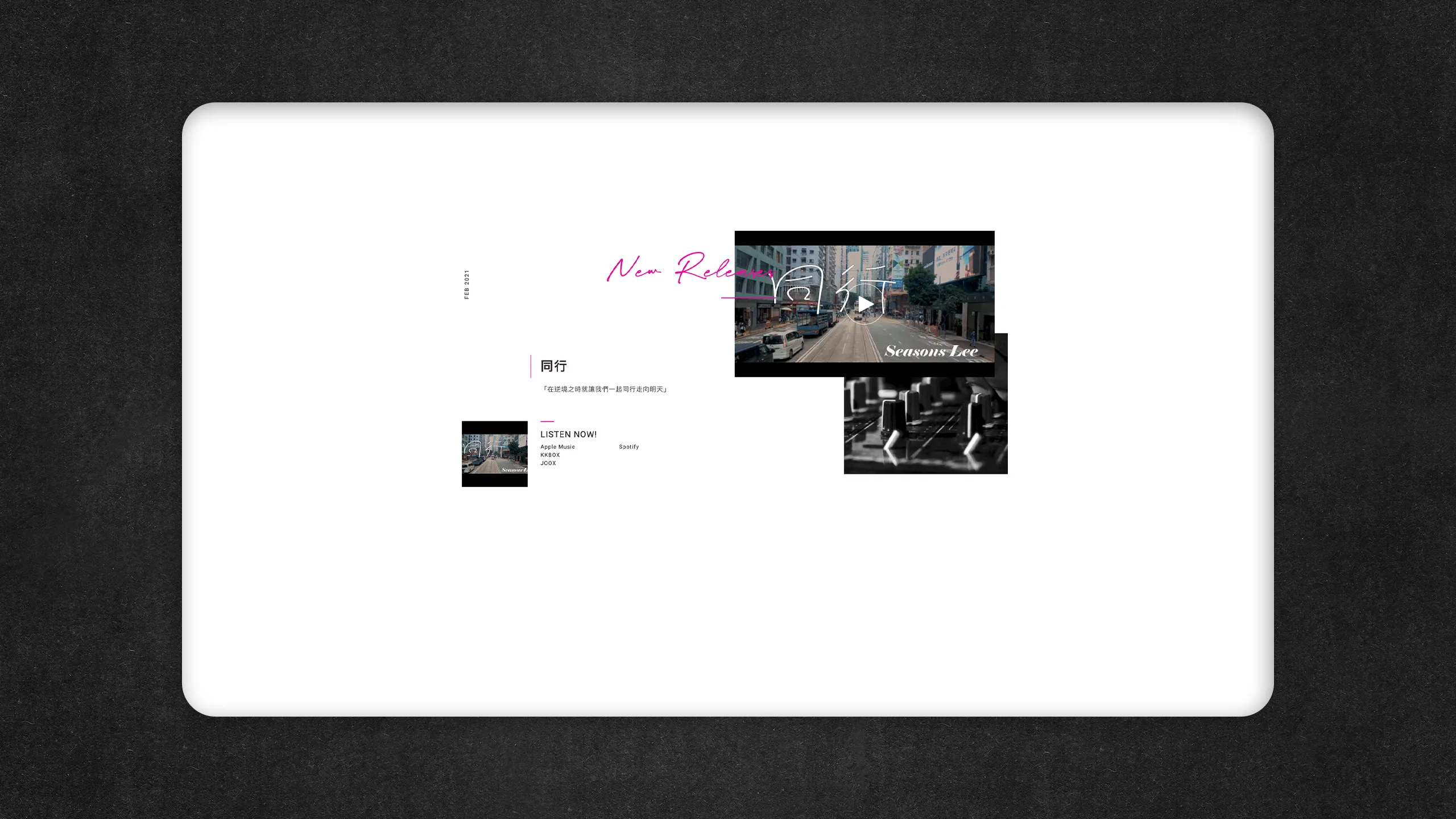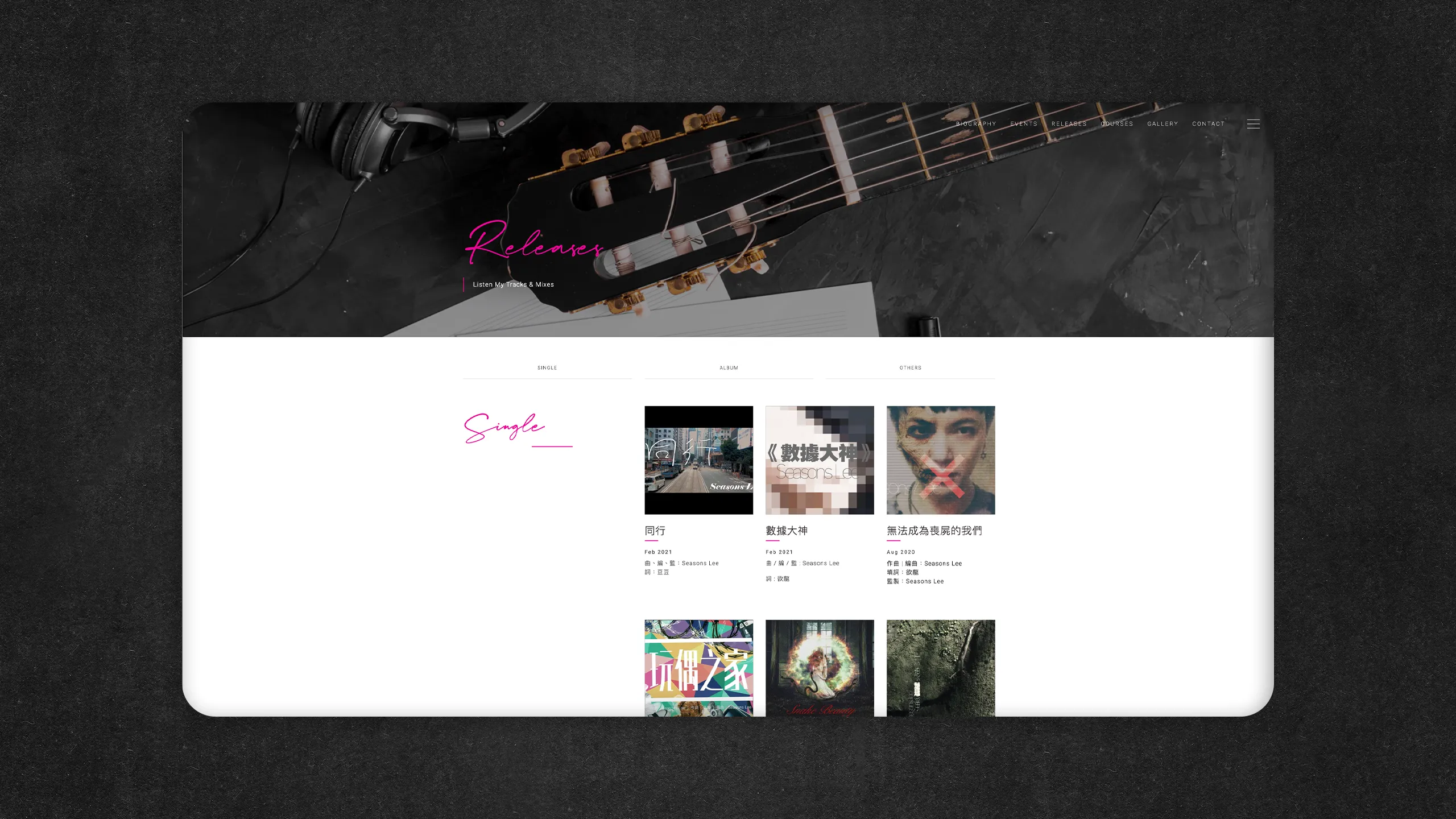 The result is a captivating homepage that immediately immerses visitors in Seasons Lee's world. As they arrive, they are greeted by a carefully curated background music composition that sets the tone for the entire experience. The music seamlessly integrates with the website, ensuring a cohesive and harmonious interaction, whether on desktop or mobile devices.