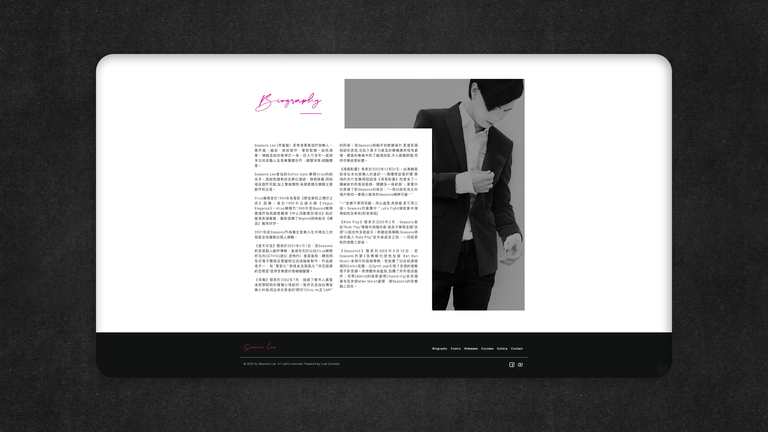 Luxe Concept builds Seasons Lee's website, capturing his vibrant personality with captivating music, seamless mobile experience, and user-friendly management.