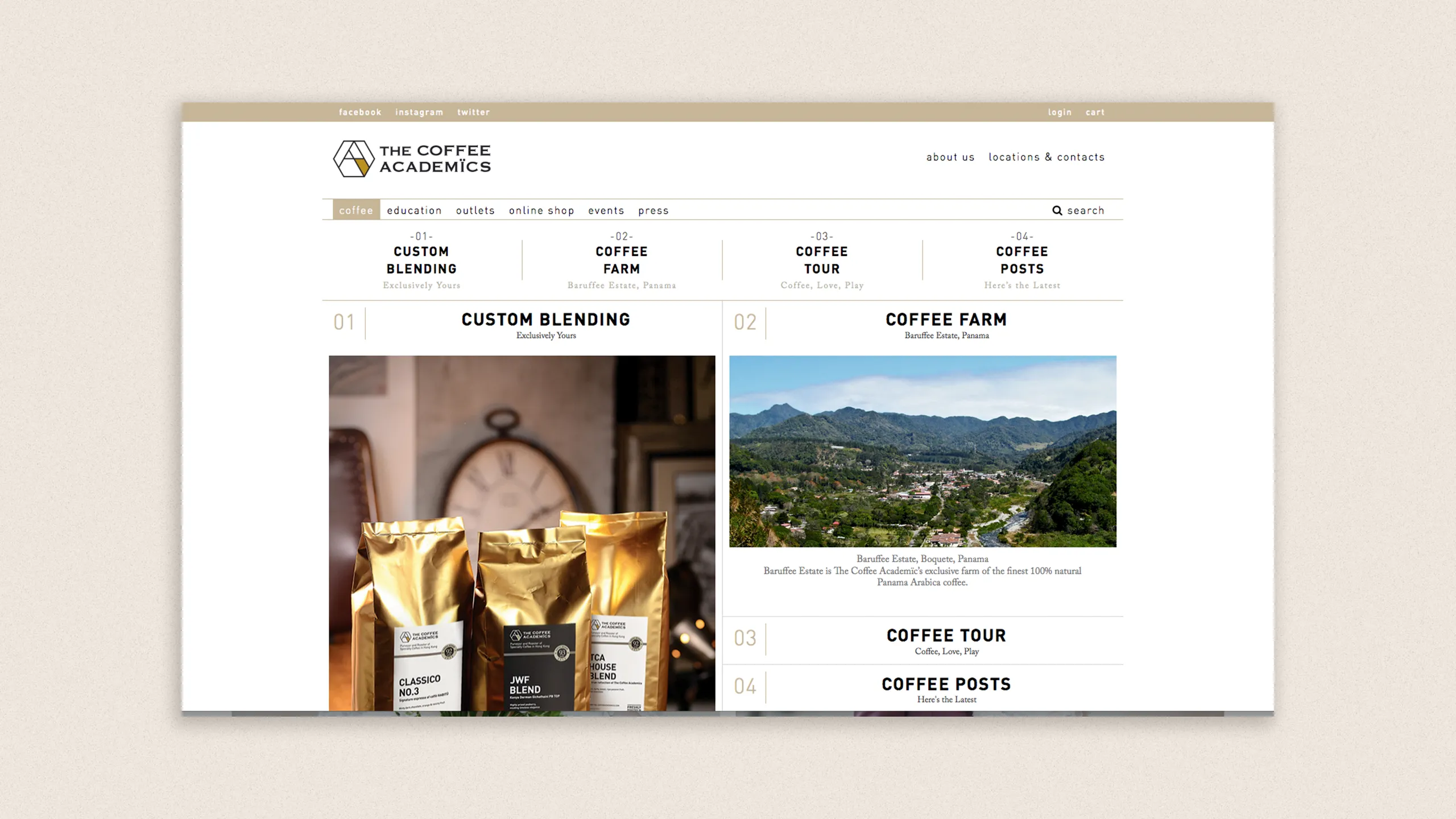 Revamped The Coffee Academics' website with a modern, grid-based layout to showcase their premium brand, imagery, and expert coffee offerings. Ongoing mobile optimization and feature enhancements.