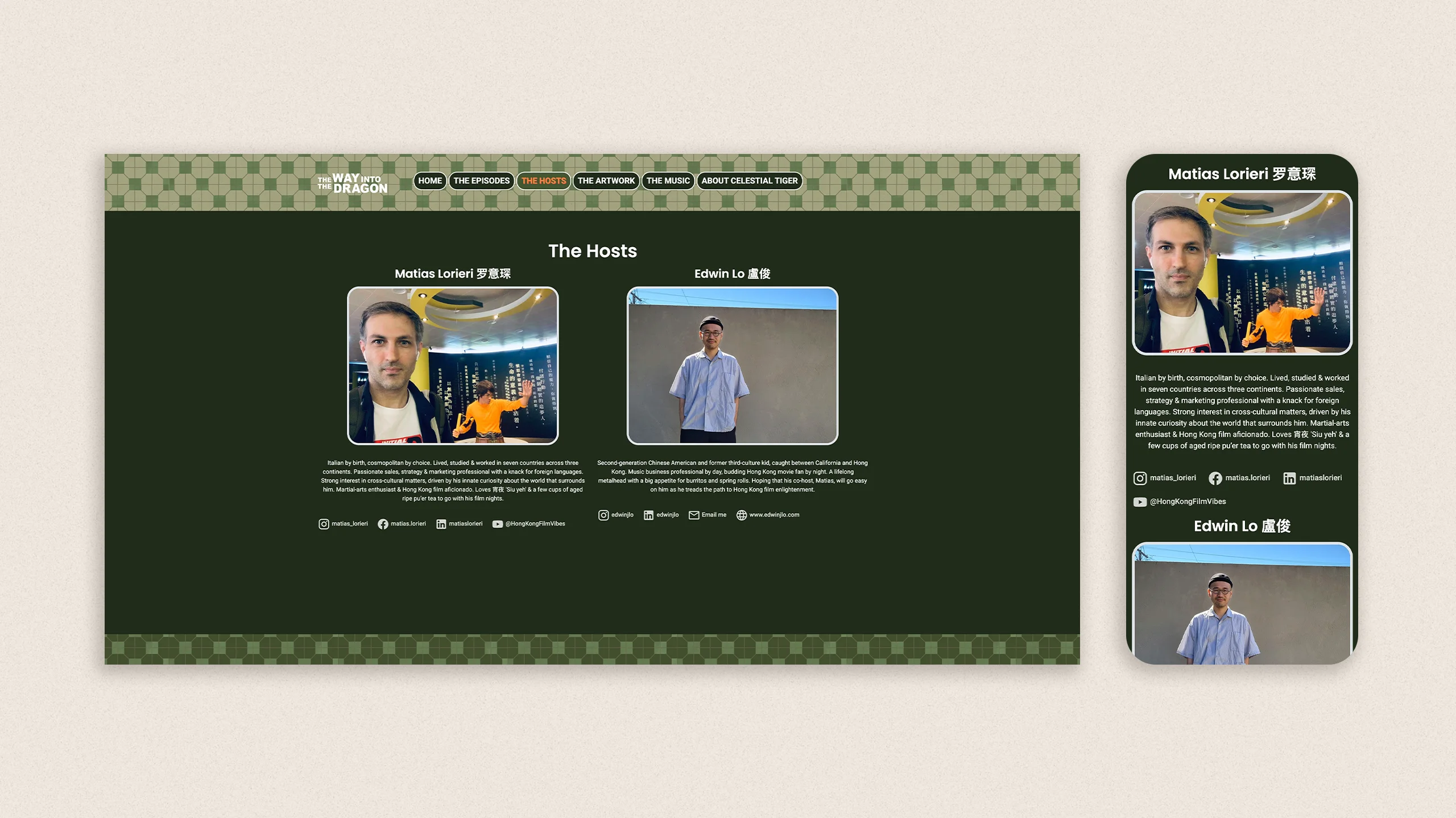Our team was entrusted with the design and development of "The Way into the Dragon," a podcast website dedicated to discussions about Hong Kong and Chinese movies. Working closely with Rebecca Lin's key visual design direction, we aimed to create a captivating online platform that embodies the essence of these cinematic worlds.